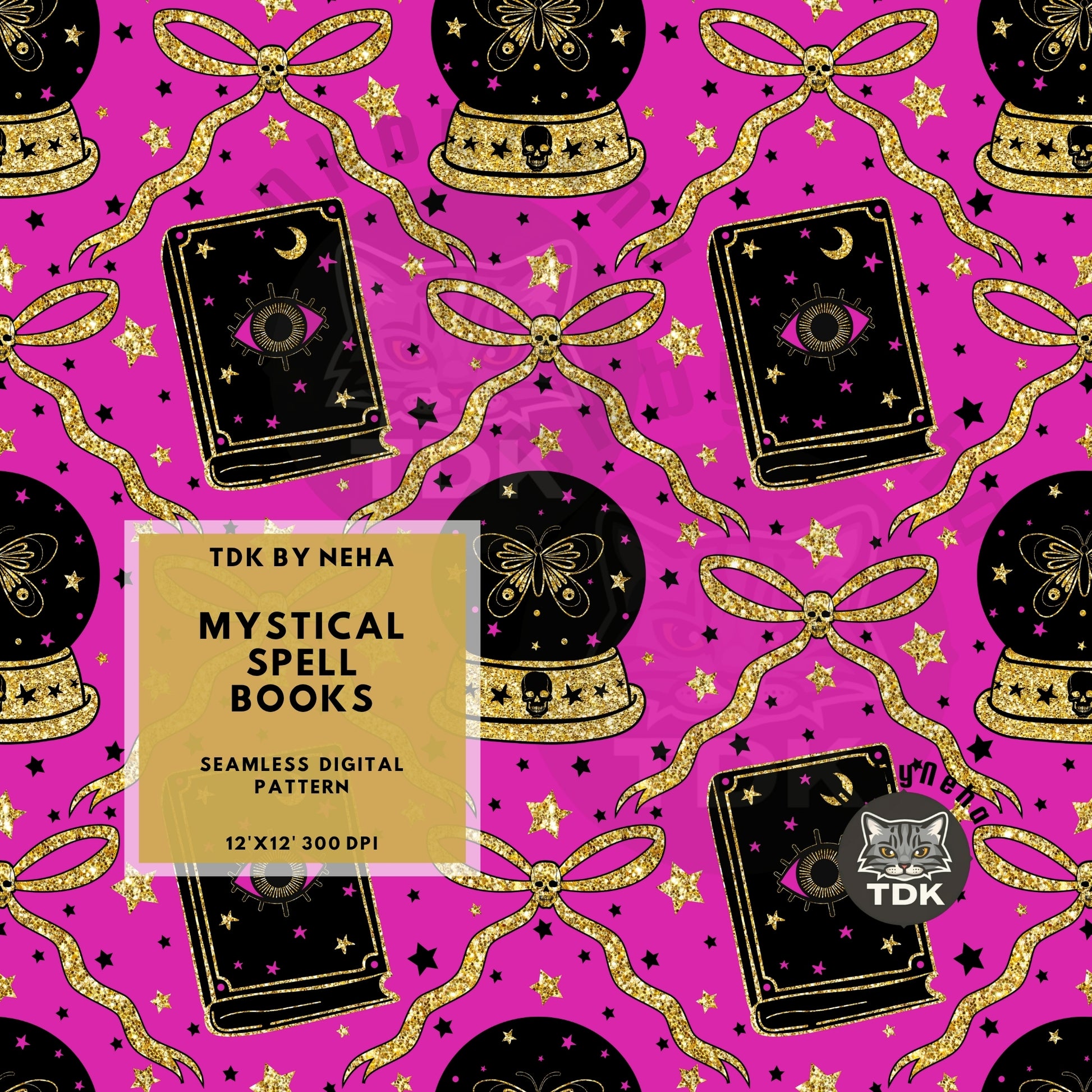 Coquette Bow Spell Books Seamless PNG (Pink)