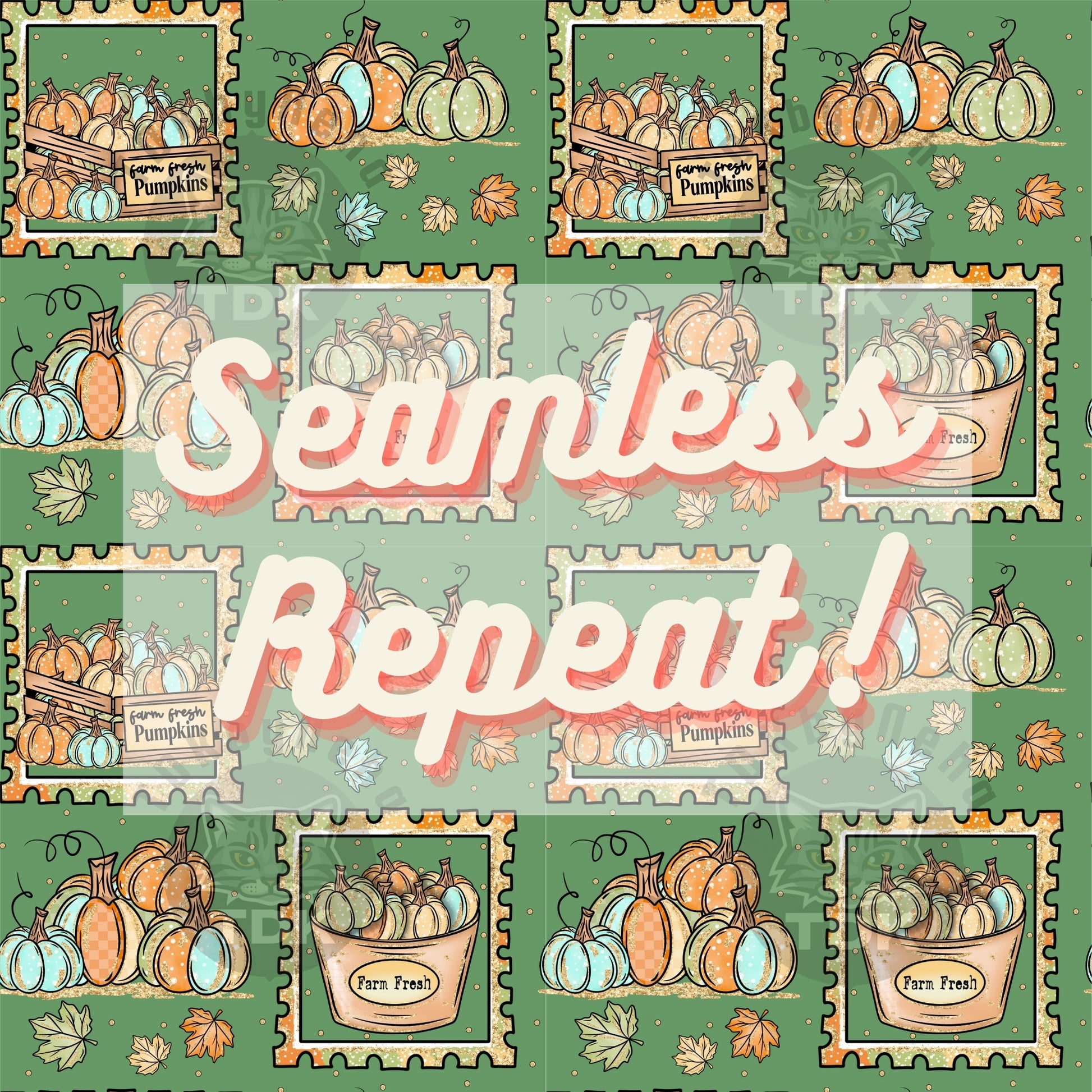 Farm Fresh Pumpkins Seamless PNG (Green)