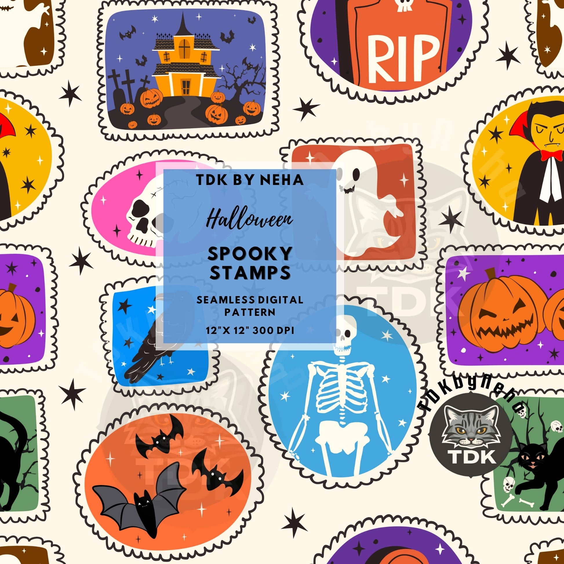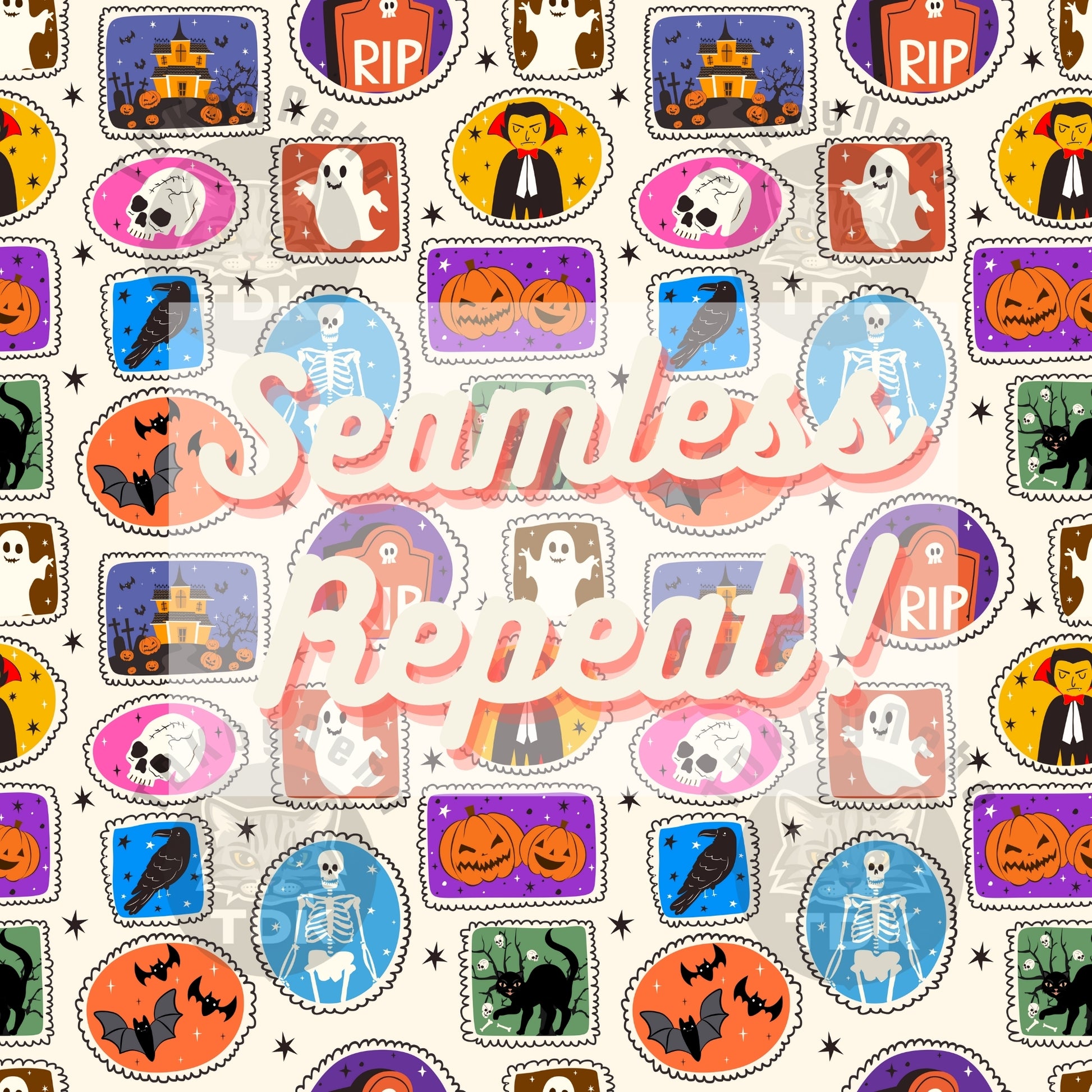 Halloween Stamps Patchwork Seamless PNG (Neutral)