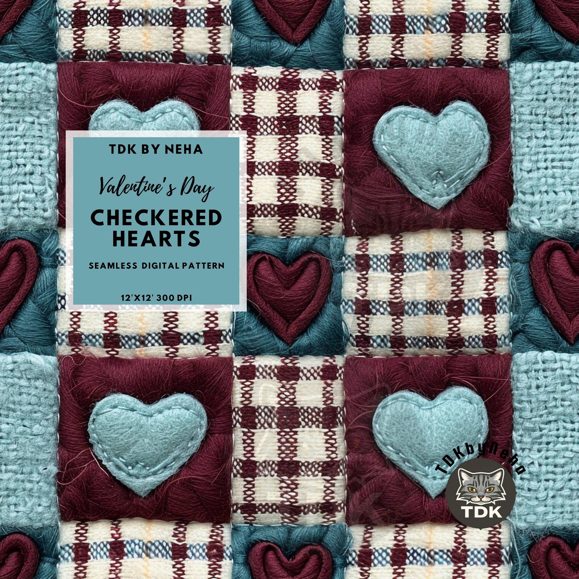 Plaids Checkered Blue and Brown Hearts Seamless JPG