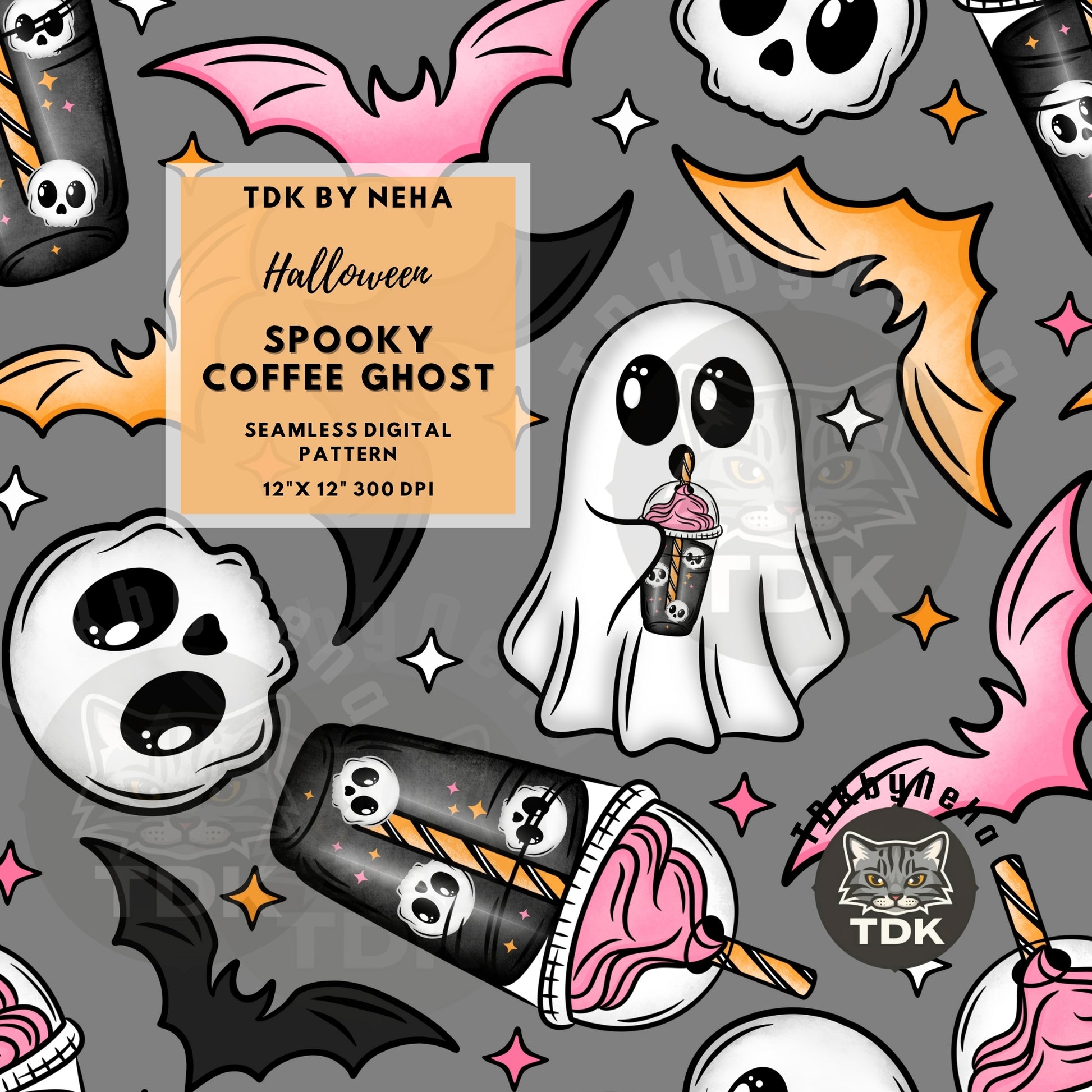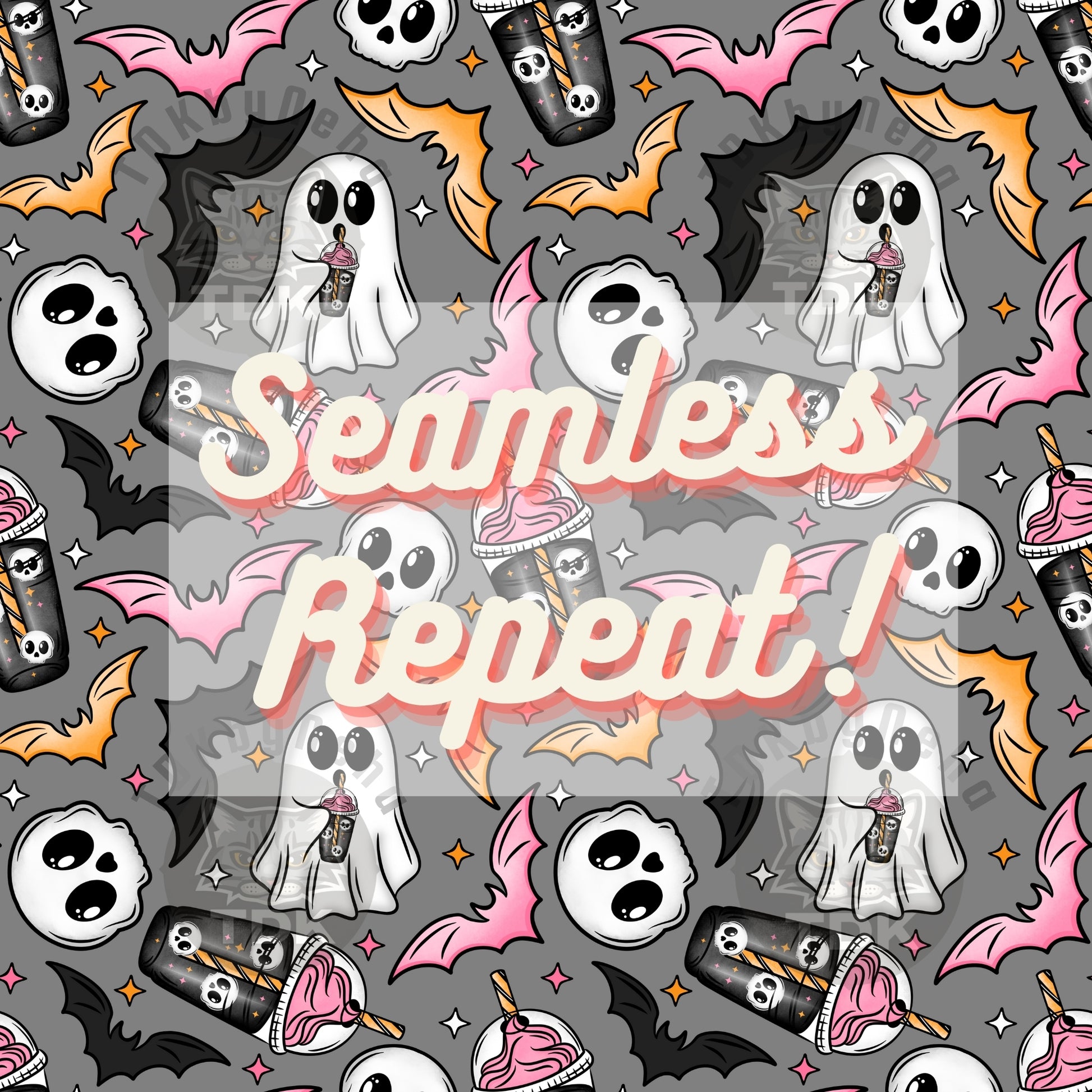 Spooky Coffee Ghost Seamless PNG