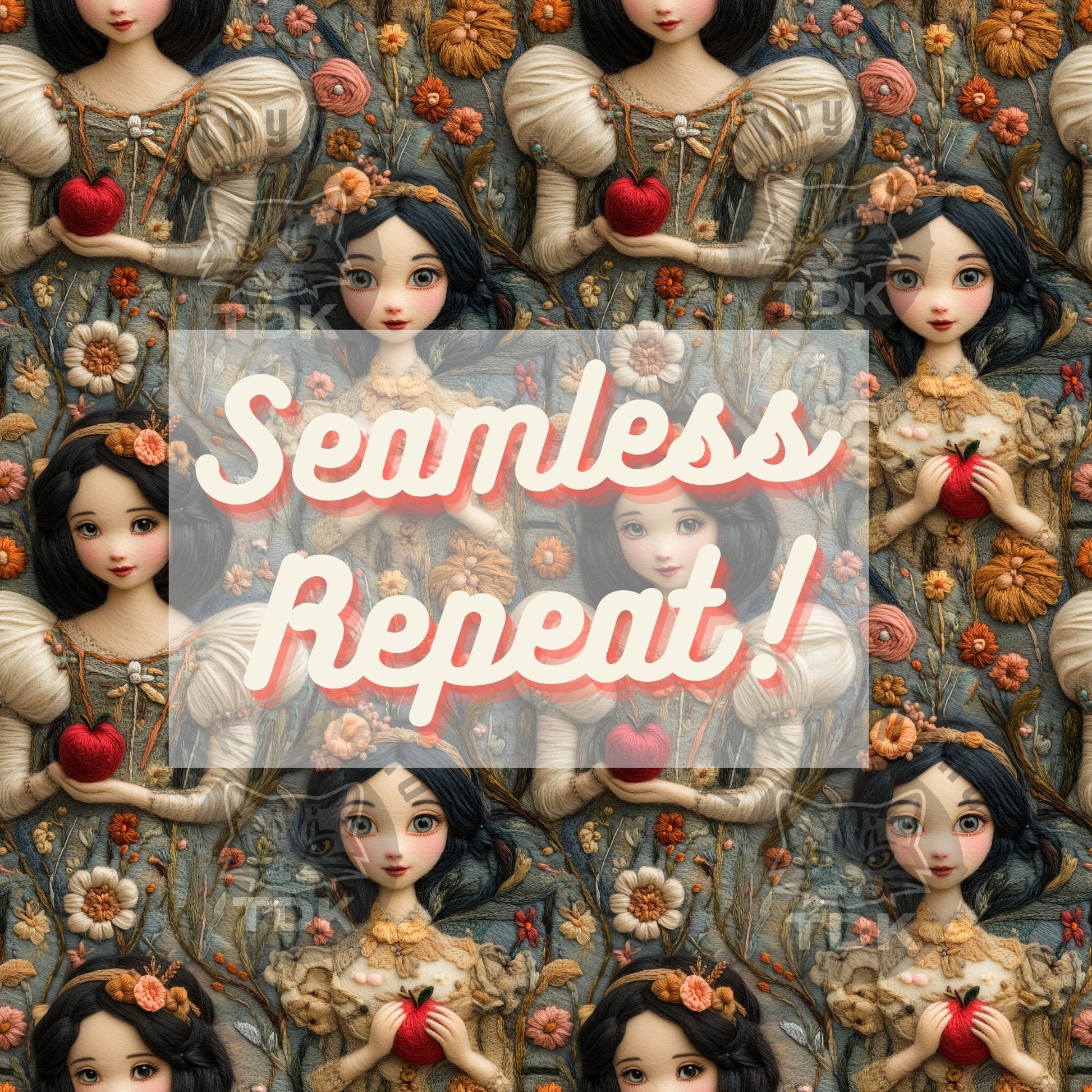 Website Exclusive - 3D Floral Snowy White Princess with Apple Seamless Design